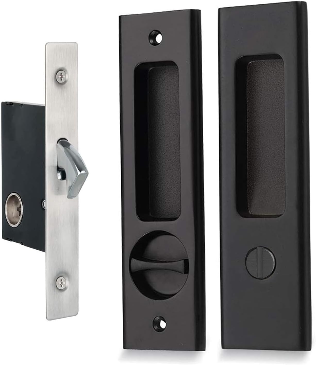 Looking for an anti-corrosion door lock thatâs as beautiful as it is functional? The Hoconnie 6.3" Privacy Pocket Door Lock delivers both with its Matte Black finish and robust construction. Designed for use with sliding pocket doors, it fits door thicknesses between 1-7/16" and 1-15/16" and works for left and right-handed doors. The polished edge ensures a safe and smooth installation, while the durable zinc alloy and copper cylinder provide lasting strength. Whether in your bathroom, hallway, or any other area, this lock keeps your space secure without drawing attention. Its easy installation and reliable performance make it a top choice for homeowners seeking both safety and aesthetics. Backed by a 5-year warranty, this is the perfect solution for those who want peace of mind and modern style in one sleek package.