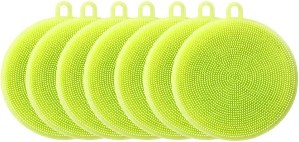 This 7-piece set of durable silicone dish scrubbers is designed to clean all kitchen surfaces effortlessly. From glassware to metal tools, each sponge is crafted with gentle, non-abrasive bristles that make scrubbing a breeze without causing any damage or irritation to your kitchenware.