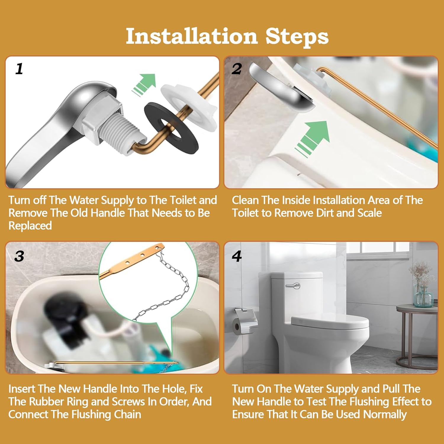 Our Durable Toilet Parts are crafted from high-quality Stainless Steel to provide a long-lasting, rust-proof solution for your bathroom needs. This Front Mount handle is engineered to be strong yet smooth, reducing strain during use and enhancing everyday comfort. The universal design ensures it will fit American Standard Toilet and most other brands, while the built-in 3 holes for secure chain attachment make it simple to connect and adjust the chain. It's not just a replacementâit's an upgrade that brings reliability and convenience to your home.