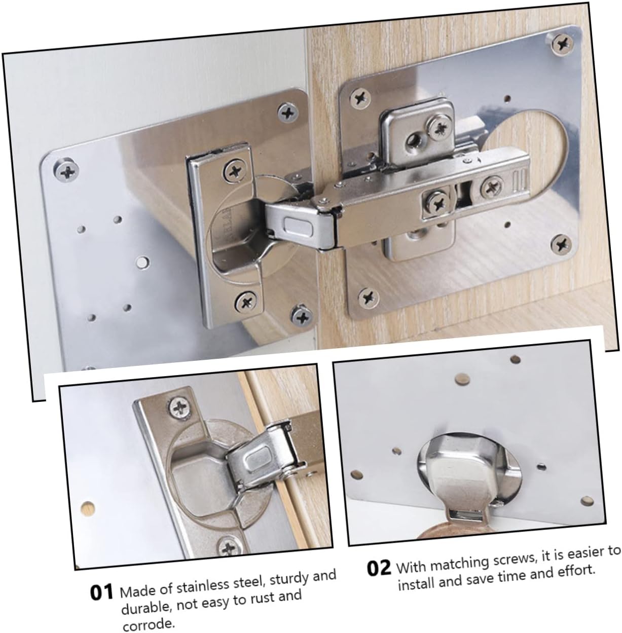 If your furniture is showing signs of wear and tear, this 4-piece stainless steel hinge repair kit is the ideal choice for a strong, long-lasting fix. Made with high-quality stainless steel, it's built to withstand the toughest conditions, including moisture and heavy use.