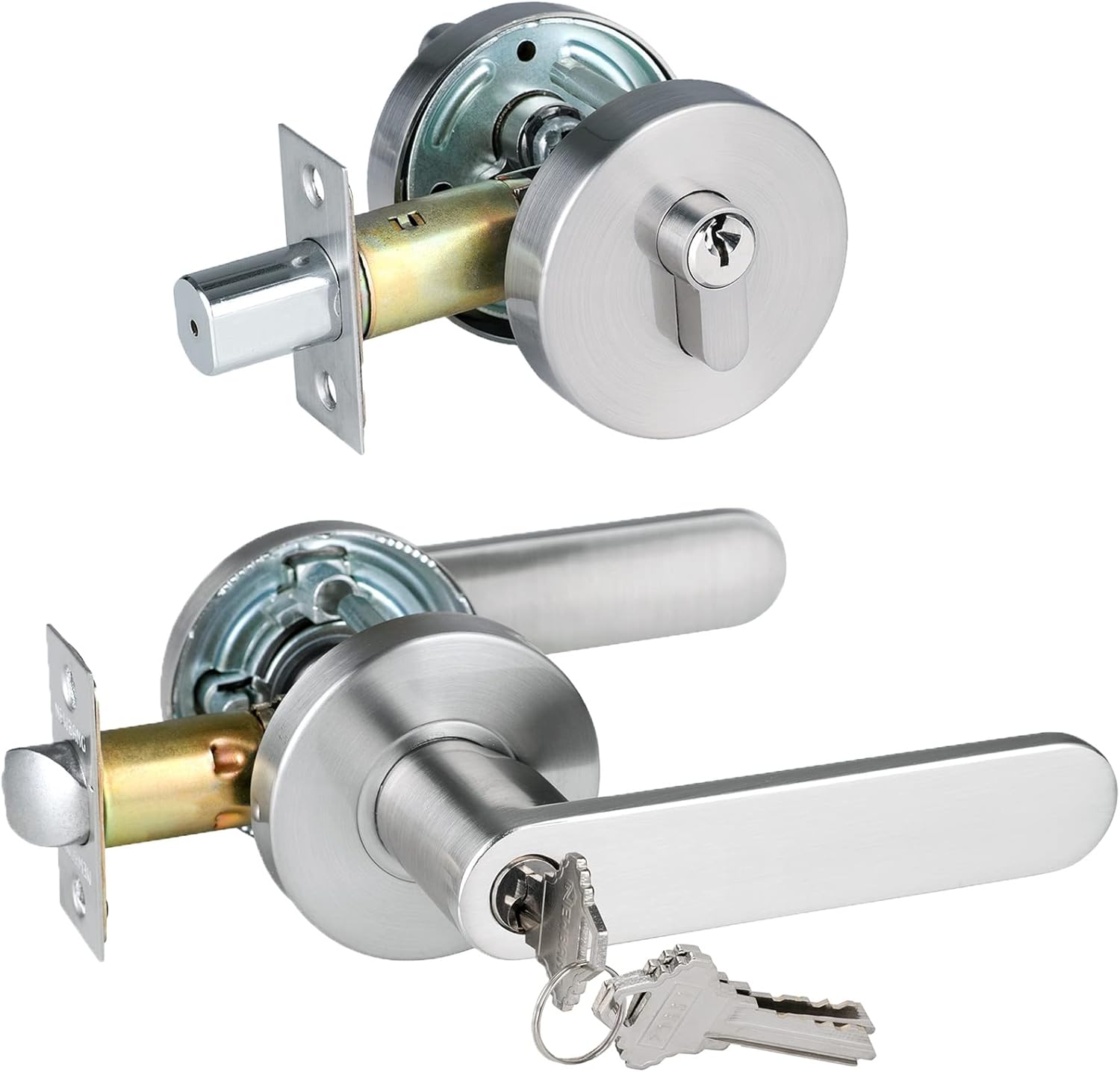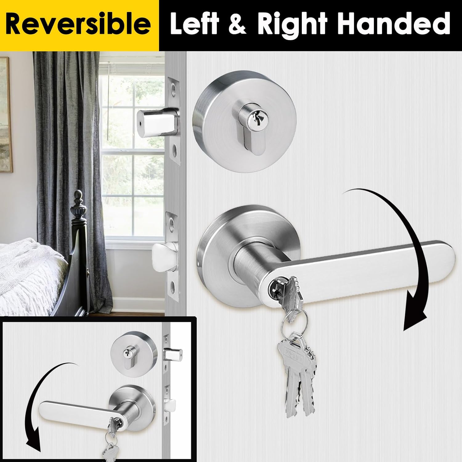 Featuring a durable lever handle and a solid single cylinder deadbolt, this lock set offers added security for your home or office doors. The premium finish not only enhances the appearance but also resists wear and tear, ensuring long-lasting service through 200,000 cycles. ADA compliant construction guarantees accessibility and usability for all.