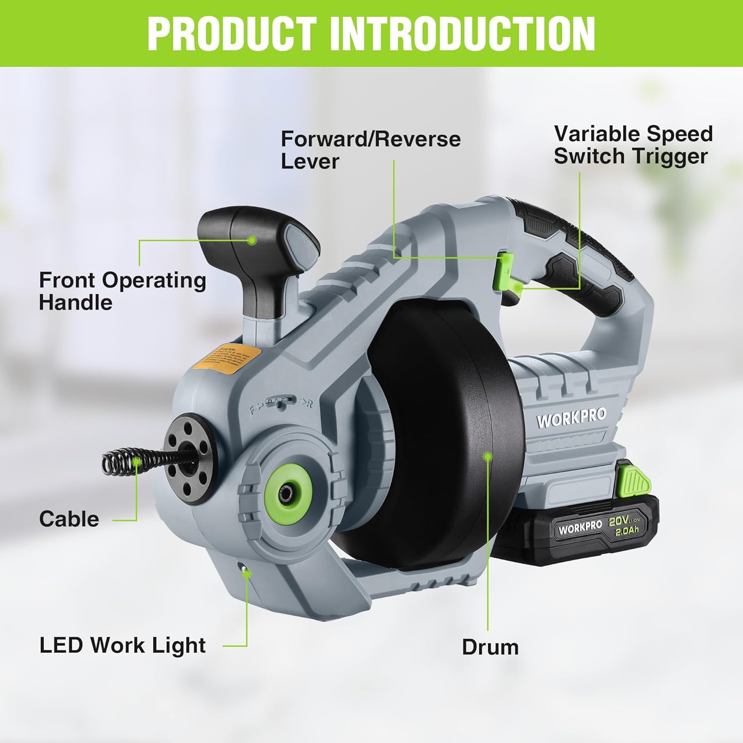 Effortless Operation â This cordless design eliminates the need for cumbersome cords, giving you full mobility while working. The ergonomic handles are crafted for comfort and control, allowing you to work for longer periods without strain. Plus, the speed control feature lets you adjust the force based on the situation, making it safe and effective for all types of plumbing tasks.