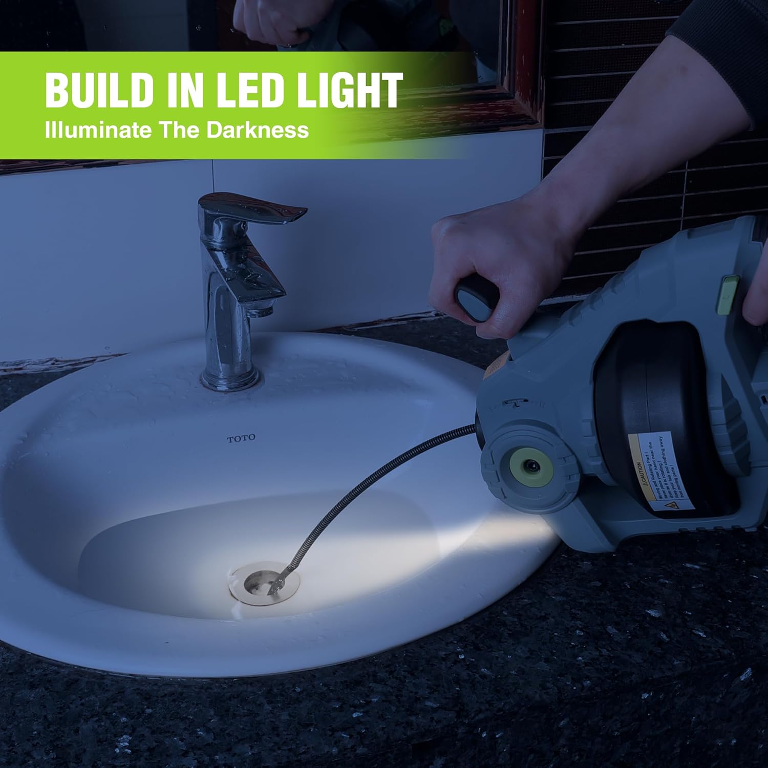 Whether you're a professional plumber or a homeowner tackling clogs at home, this powerful electric drain snake is designed to make the job faster, easier, and more efficient. With a 25 ft. cable for deep reach, you can clear stubborn blockages in drains, pipes, and gutters without hassle. The built-in LED work light ensures clear visibility in tight, dark spaces, helping you complete the job with confidence and precision.